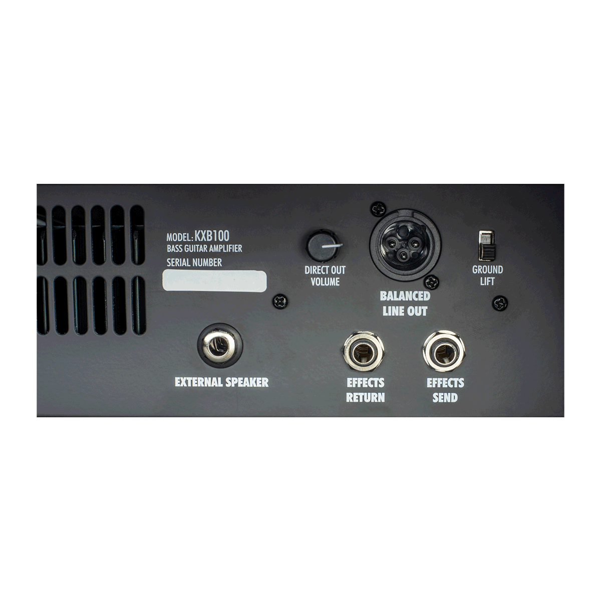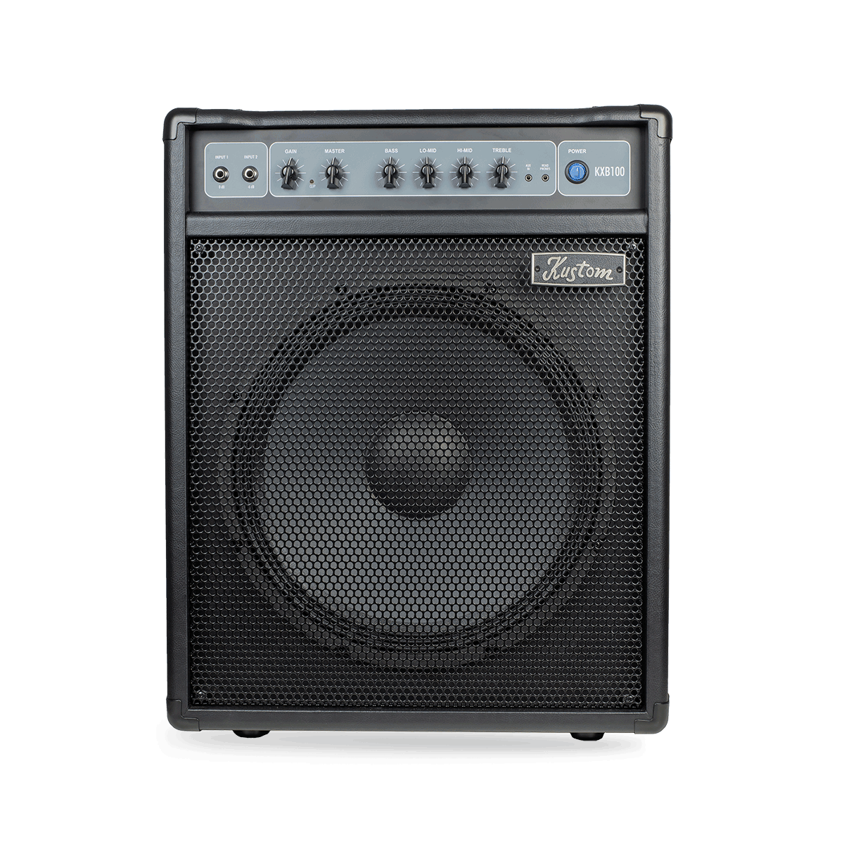 KXB100 The Kustom KXB100 is a 100W bass amplifier with a 15" Kustom speaker and Bass, Lo-Mid, Hi-Mid, and Treble controls. The preamp provides both Gain and Volume controls and is perfect for classic bass tones or more aggressive sounds with a hotter gain structure. For performance flexibility, the Kustom KXB100 provides a balanced XLR Line Out and Ground Lift and Volume control. An effects loop with Send and Return jacks offers flexibility for integrating external effects and processors.